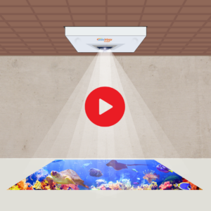 Self-contained ceiling assembly for projection onto floor or table. Comprising a maintenance free laser projector, suitable for extended operating, up to 16 daily hours, 7 days a week.