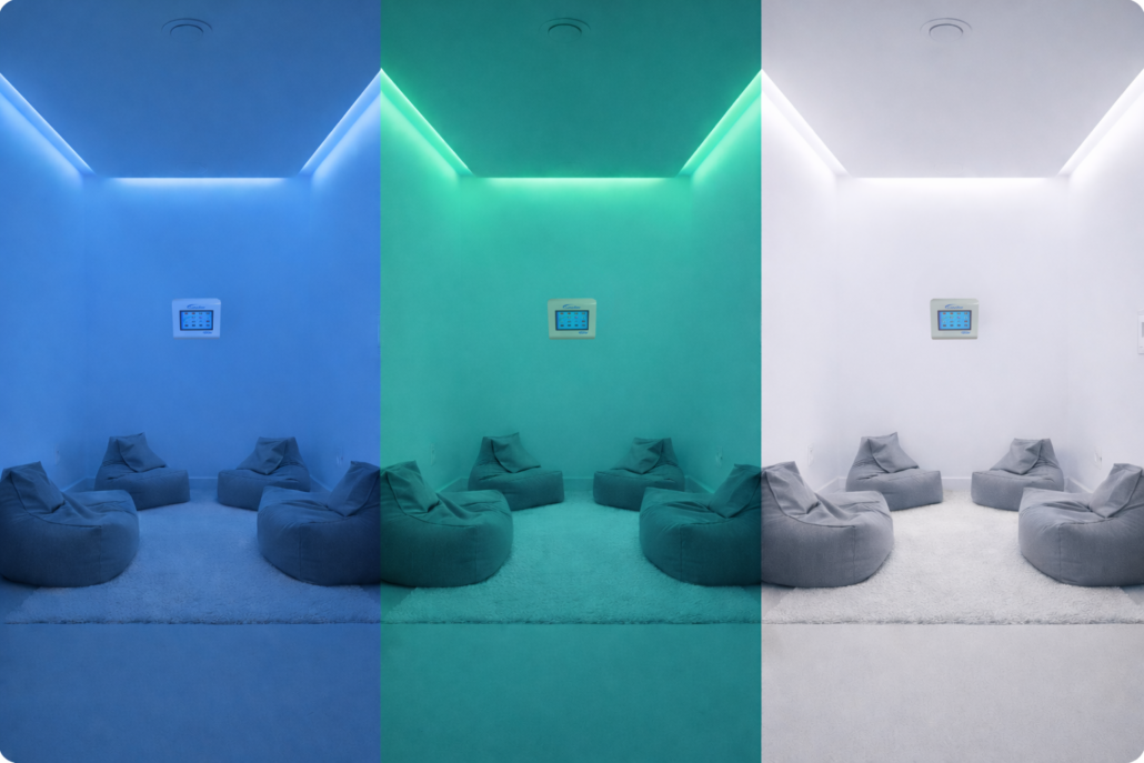 Smooth, non-intrusive light transitions support sensory comfort and allow practitioners to tailor the atmosphere to suit individual needs or session goals.
