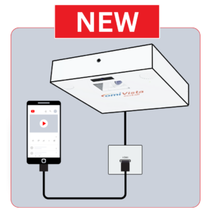 Self-contained ceiling assembly for projection onto floor or table. Comprising a maintenance free laser projector, suitable for extended operating, up to 16 daily hours, 7 days a week.